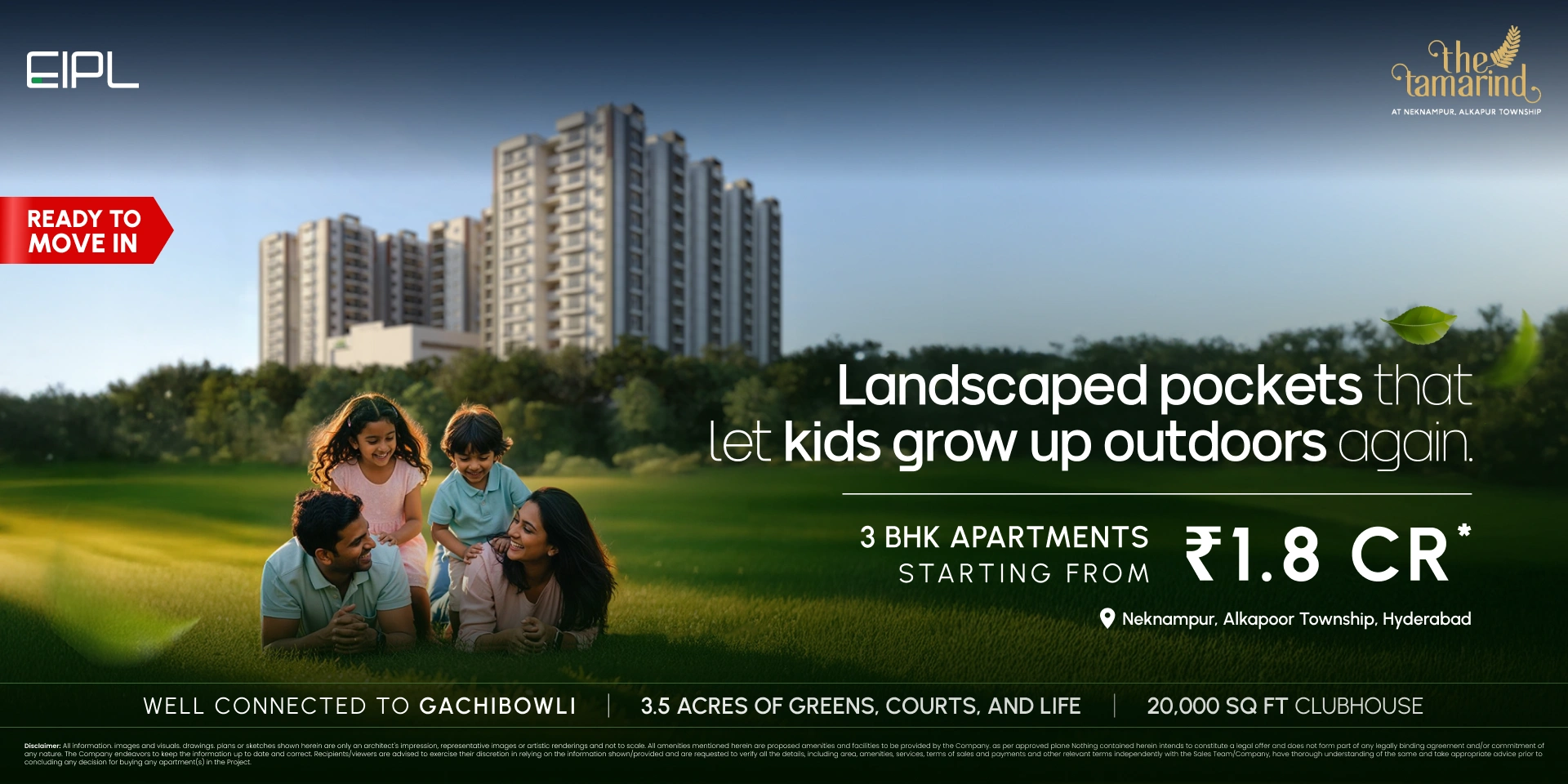 All information, images and visuals, designs and drawings, plans or sketches are only representative, an architect’s impression or artistic renderings and not to scale. Interior and Accessories shown in the Show Apartment are illustrative and indicative only. Areas and land outside the periphery/ boundary of the Project are indicative and no right is created thereon. Nothing contained herein intends to constitute a legal offer and does not form part of any legally binding agreement. Recipients/ viewers are advised to exercise their discretion in relying on the information provided and are requested to verify all the details, specifications, including common areas, landscapes, amenities and facilities, services, payment plans and other relevant terms independently with the Promoter, have thorough understanding of the same and take appropriate advice prior to concluding any decision for buying in the Project. Registration No.Coming Soon available at . For more information please visit - Project address - Hyderabad’s Financial District. Terms and conditions apply.